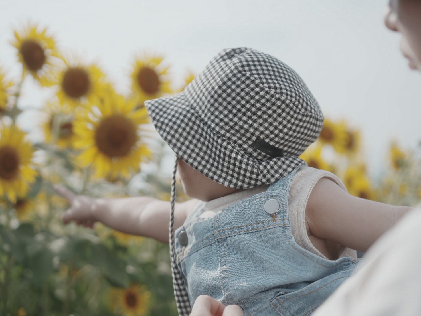 動物の耳はなく、すっきりとしたかたちで、日差しをやさしく遮ります。