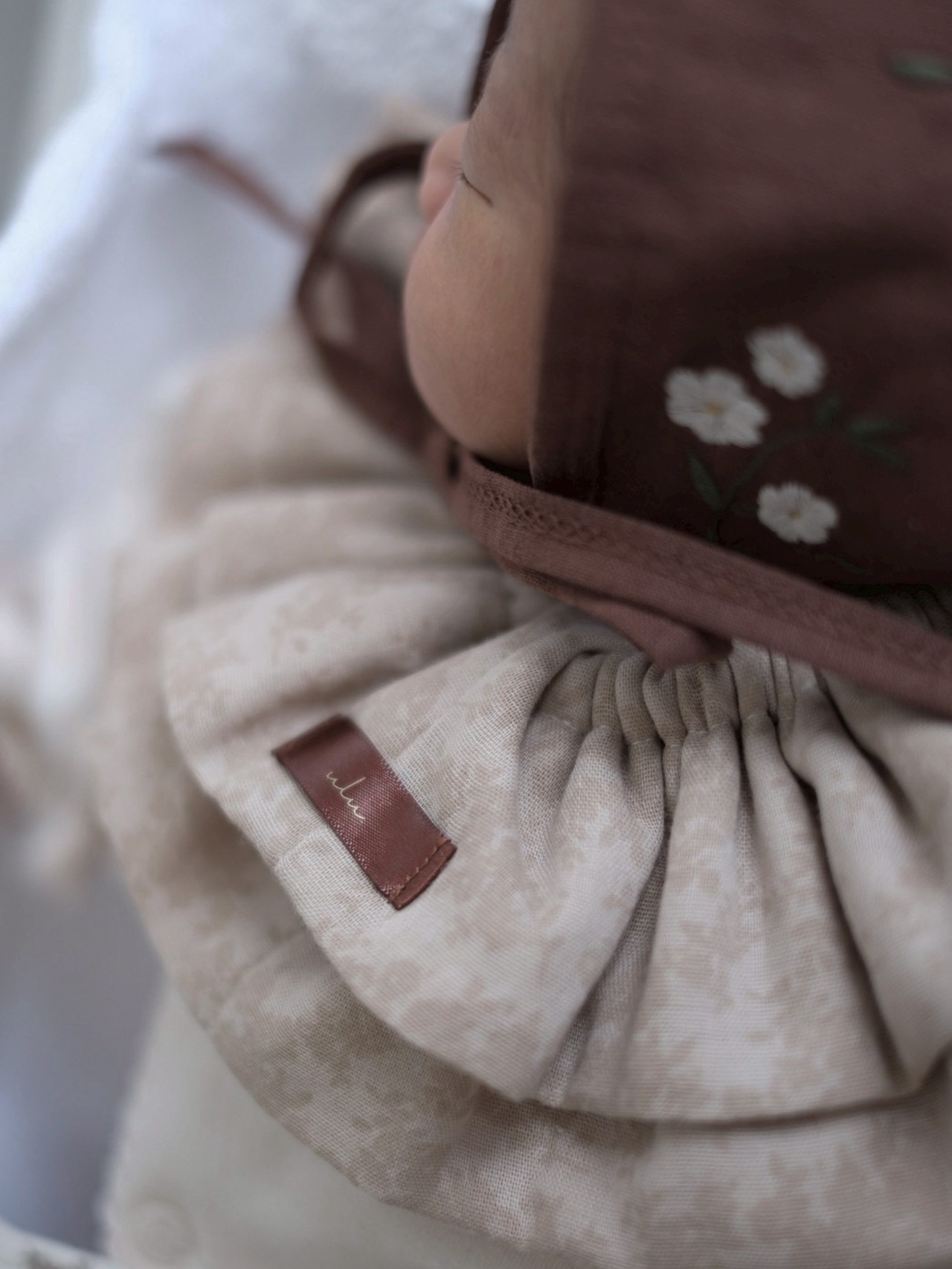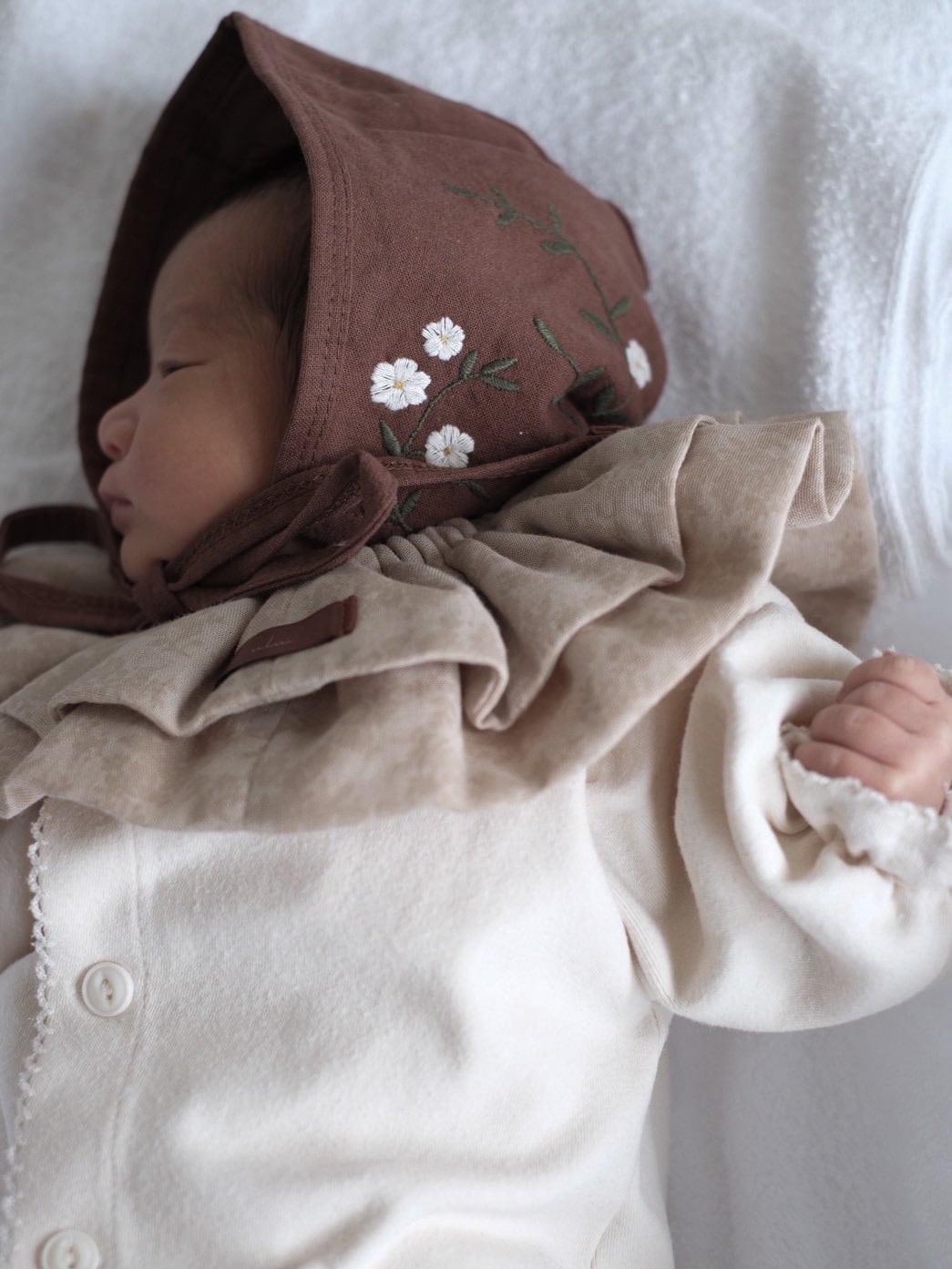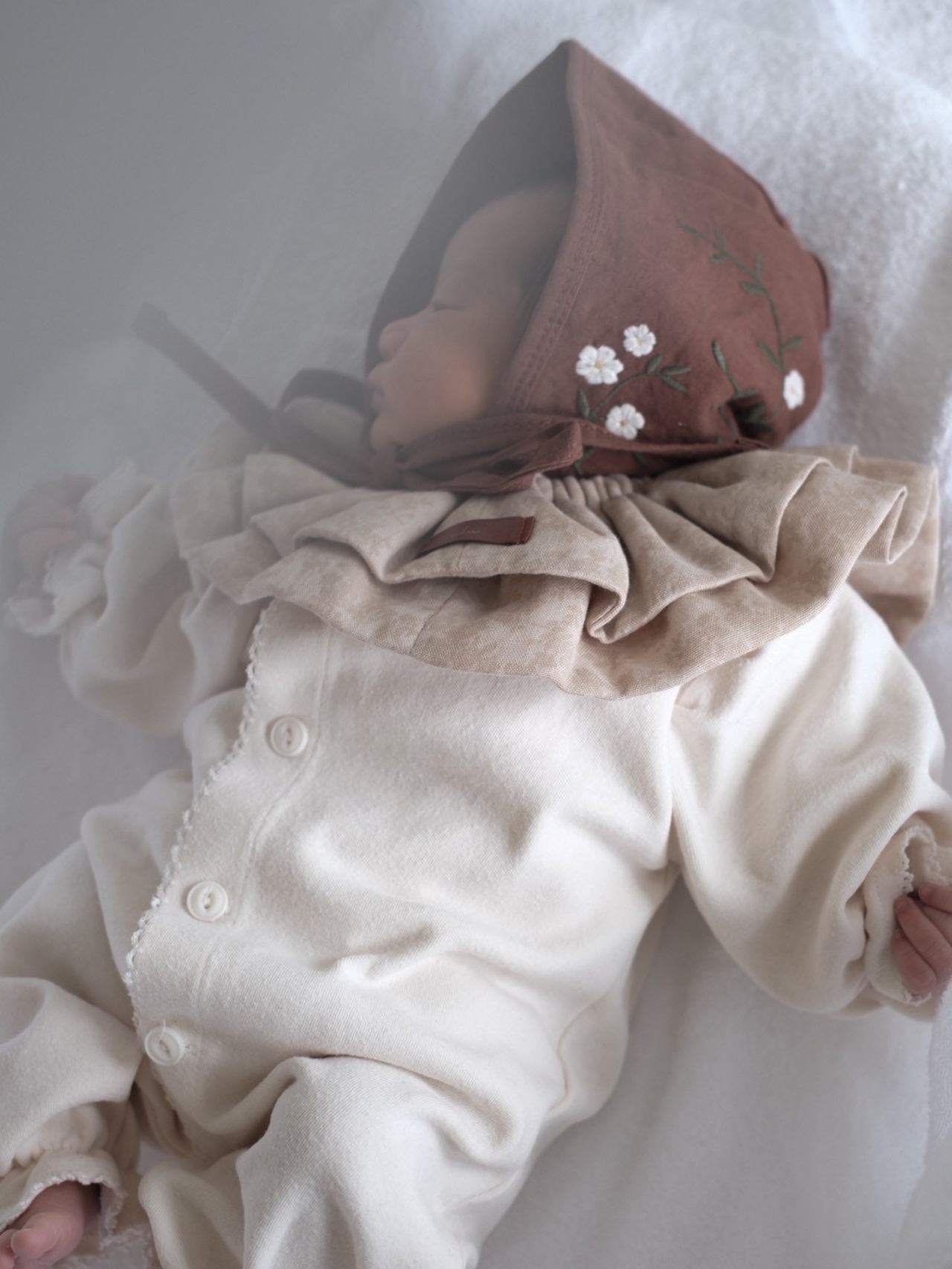 ベージュに淡く咲く花模様が、装いにさりげない特別感を添えます⋆*