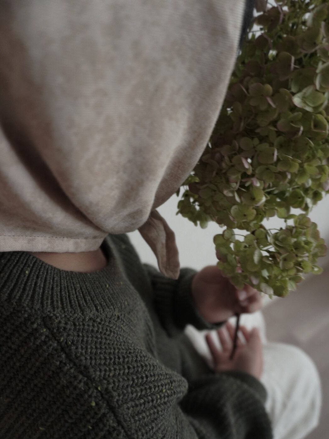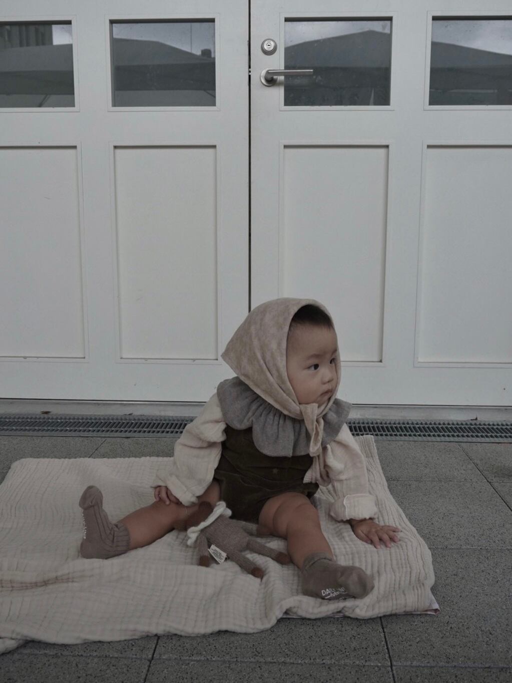 首元を包むスカーフや、三角に折ってバブーシュカに
