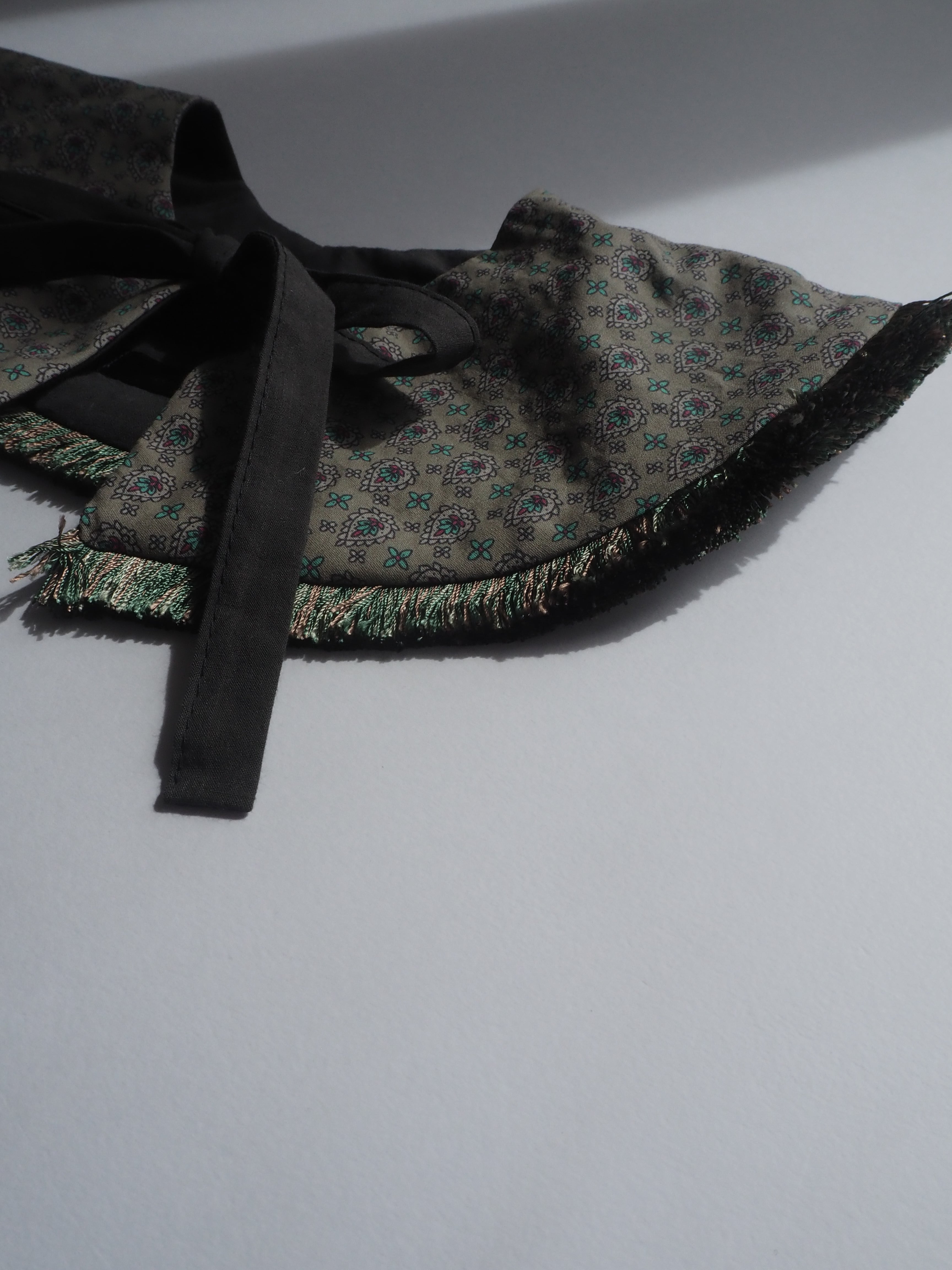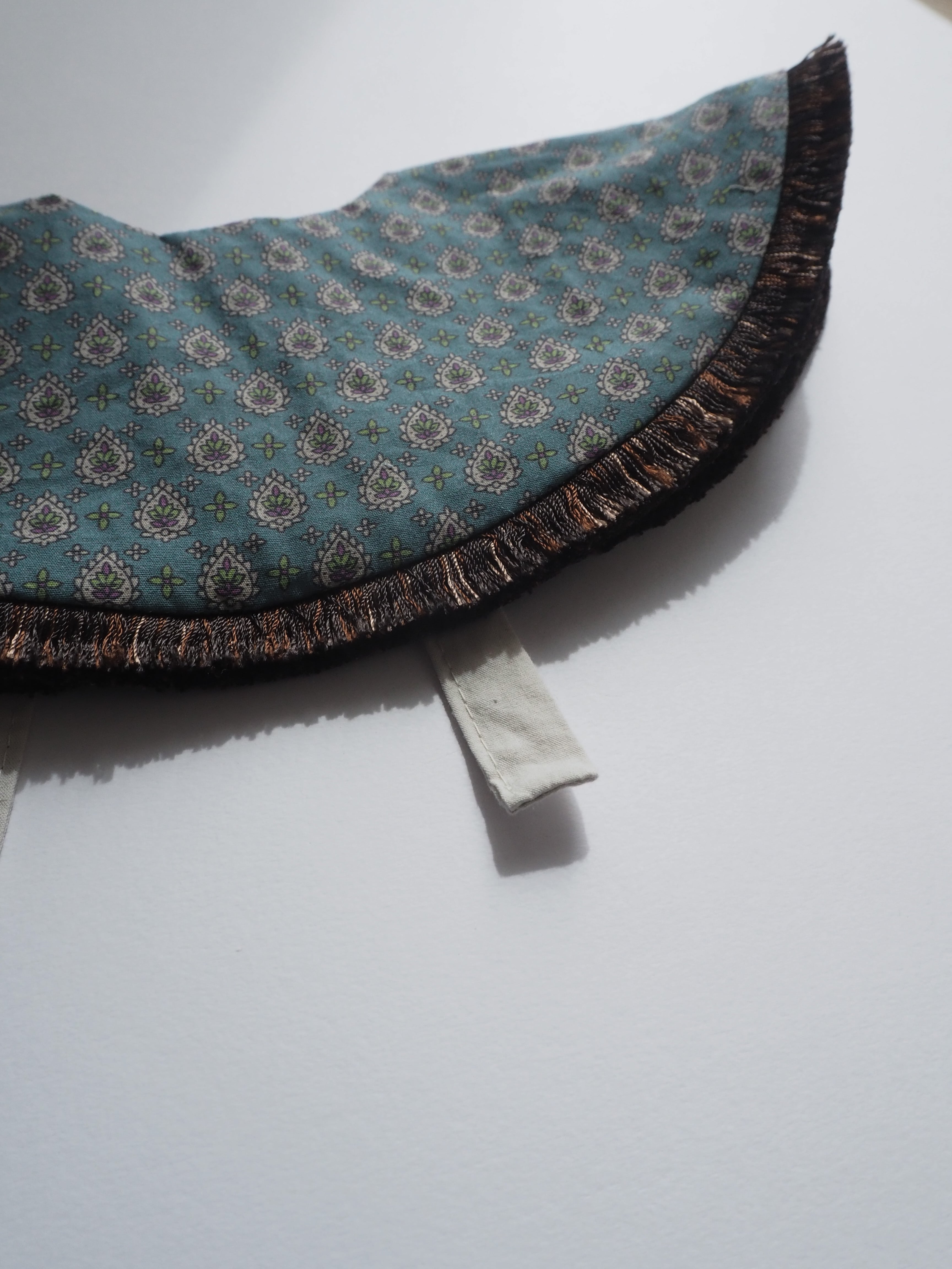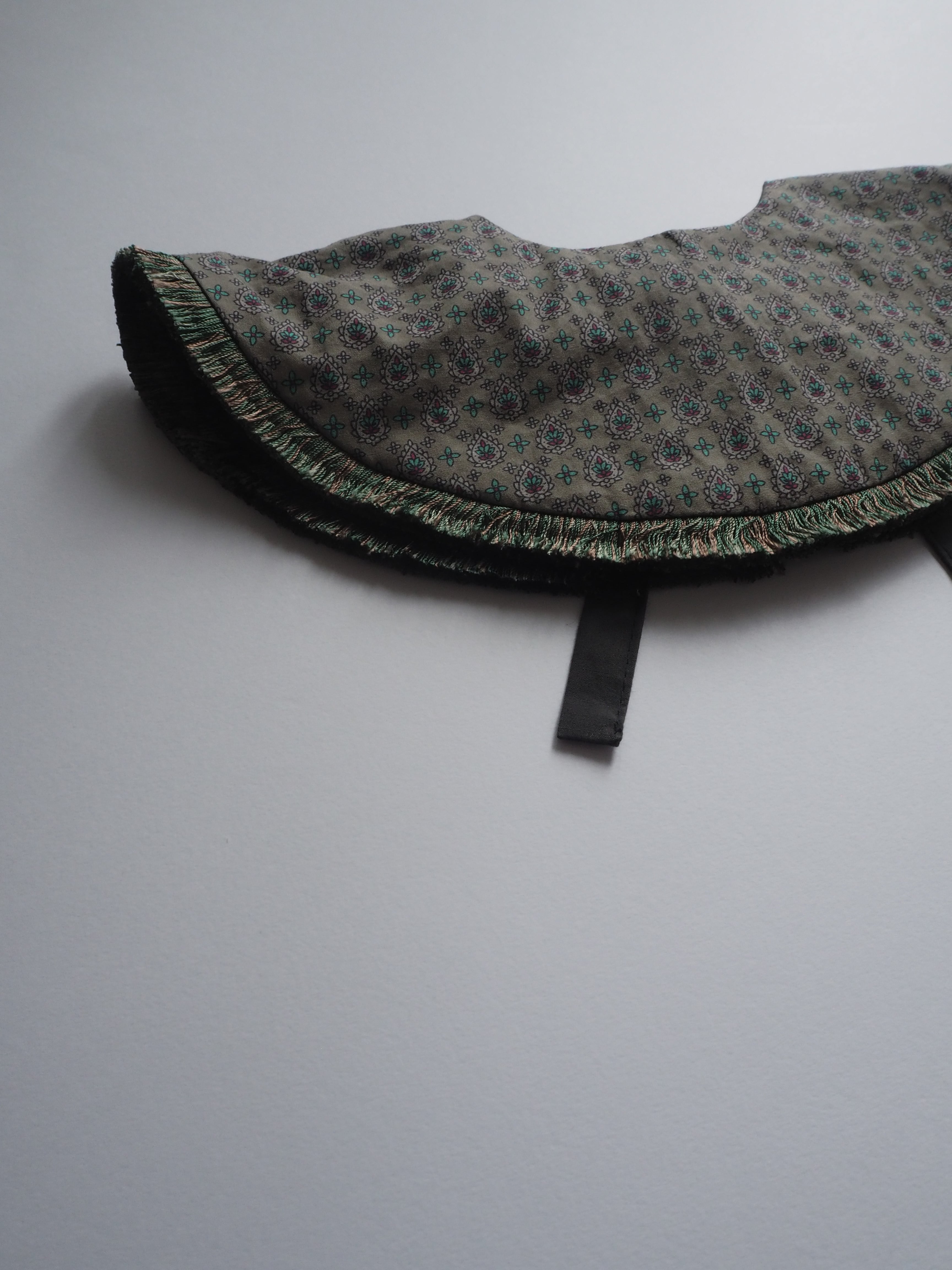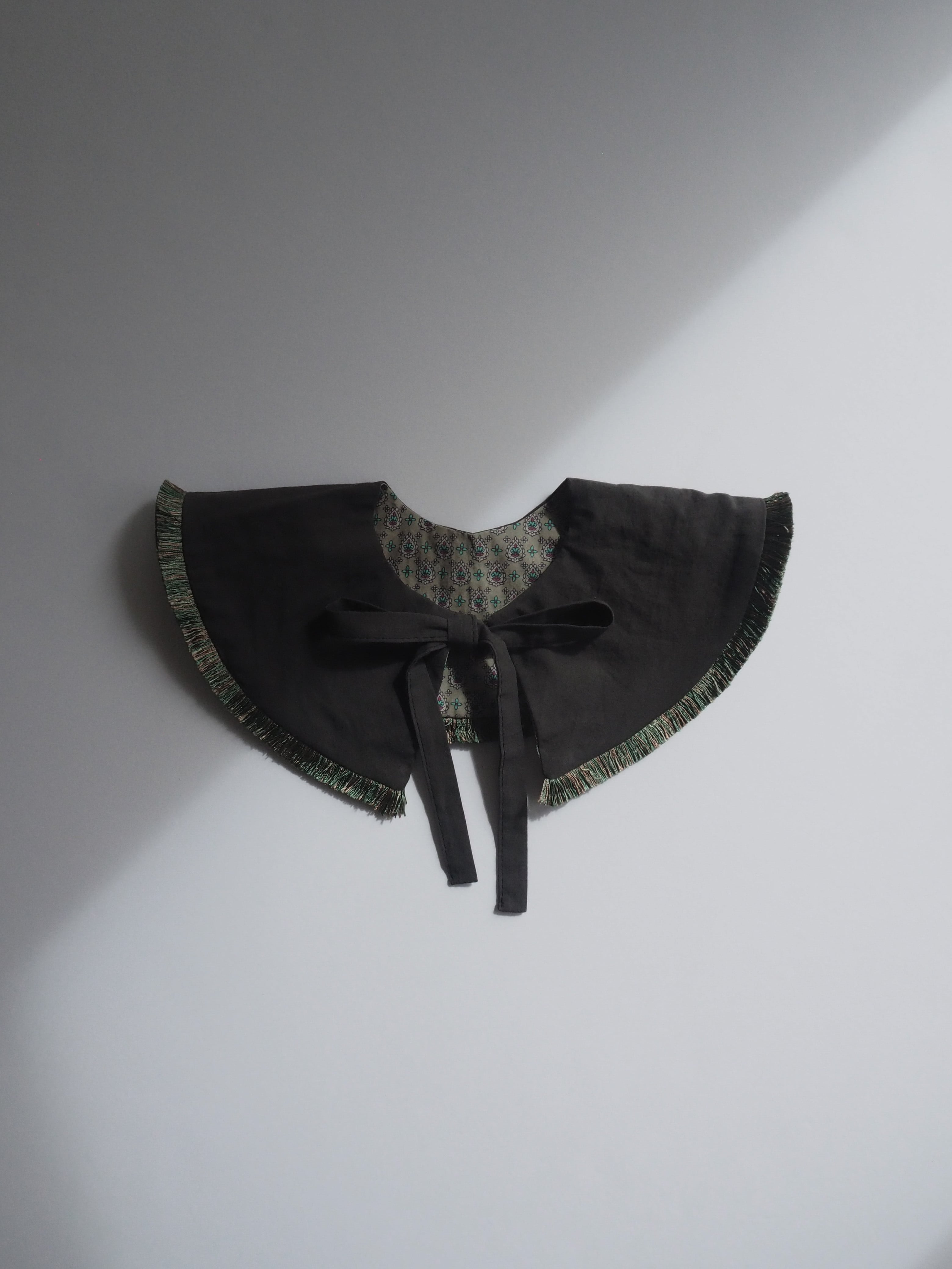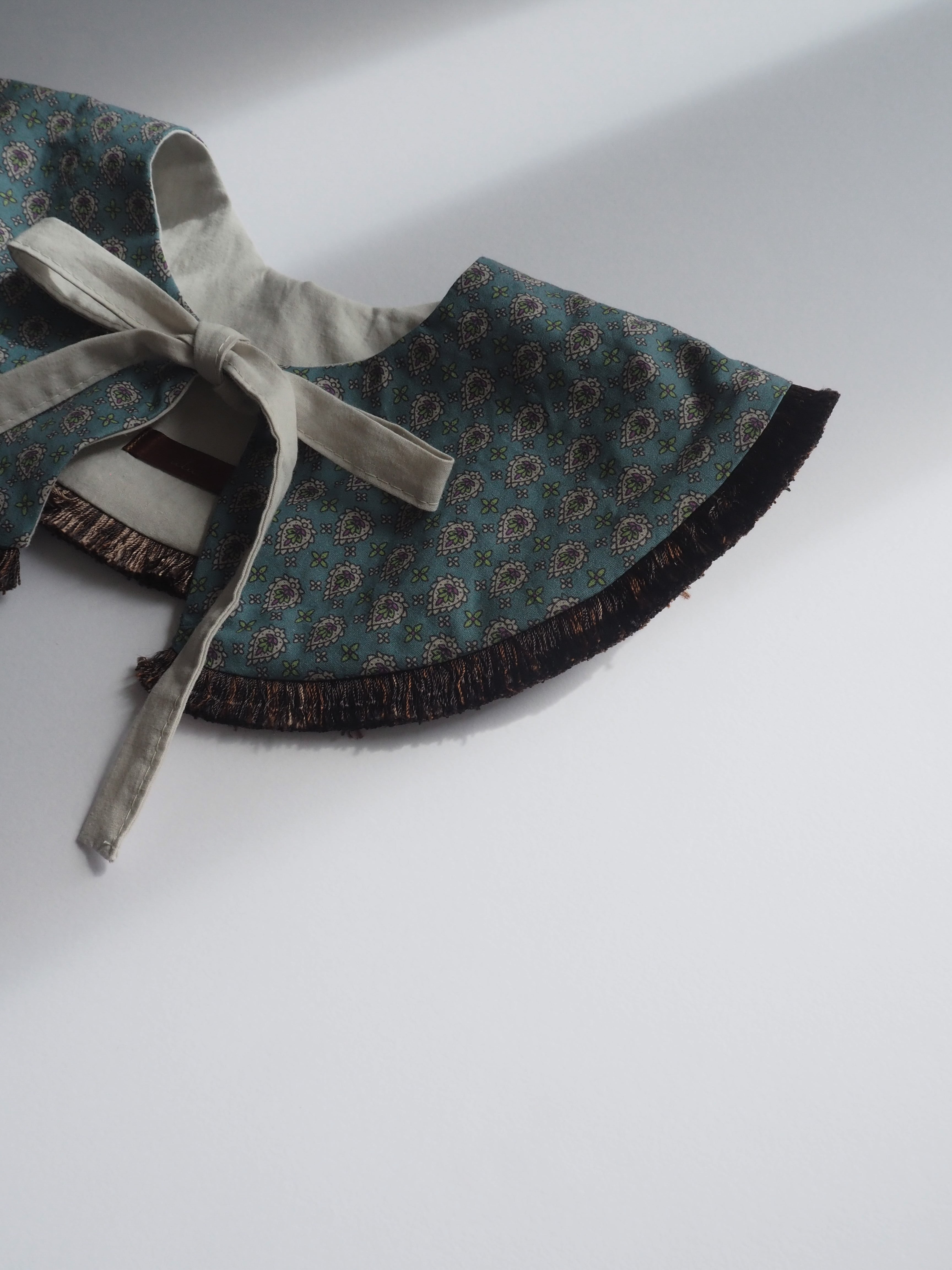 縁を飾るフリンジは、いくつかの色がゆるやかに混ざり合い
